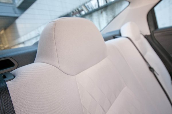 Vessenek csak egy pillantást a hátsó támlákra! Látnak rajta valami furcsát? Az ám, nincs állítható fejtámasz. Ez a fényképeken nem tűnik súlyosnak, mert az arányok azt sugallják, hogy a támlából kijövő dudorok elég magasan vannak, de nem. Én 173 centi magas vagyok, és csak a nyakamig érnek. Tudják mi történik a hátul ülők nyakával, amikor a tükörjégen hátulról belecsúszik egy másik kocsi huszonöttel az álló C-Elysée-be? Nos, ezt Karotta elég jól érzékeltette a Fiat Idea tesztjében. (A videón 6:50-nél, de érdemes végignézni, hisz történelmi jelentőségű: ennek hatására szüntették be az Idea forgalmazását itthon.)