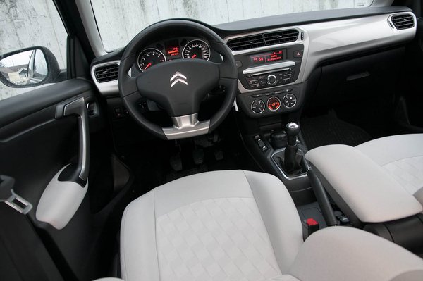 A C-Elysée legnagyobb vonzereje az lehet, hogy egészen normális, barátságos a belseje. A műszerfal szép, bár egyszerűbb a C3-asénál, viszont nem egybefekete, jutott rá nagy ezüstös betét. Minden ugyanott van rajta, mint a C3-asban, látszik, hogy lényegében csak a külső héjat cserélték le egyszerűbbre. Miért is bütyköltek volna sokat? Az autó technikája is nagyjából C3, csak jócskán megnyújtották a padlólemezt. És tudjuk, a Peugeot-nál ugyanezt kapjuk 301 néven, kicsit átöltöztetve. Az egyetlen szokatlan benne, hogy az ablakemelő gombjai a váltókar körül csoportosulnak, ami egy épelméjű spórolás. A vezető mind a négyet tudja kezelni, kevesebb vezeték megy az ajtókba, és ha összeszámoljuk, legalább egy gomb ára megtakarítható. Különben is, valamikor a BMW-k is ilyenek voltak, nem?