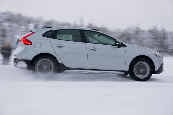 A nehéz V60 után a negyed tonnával könnyebb, teljesen mechanikus összkerékhajtású, turbómotoros V40 Cross Country T5 olyan volt elsőre, mint a hideg zuhany. Vagy inkább, mint egy kajla kiskutya – legalábbis az első körökben. Mindenféle tapadásgátló trükkel ez is biztonságos, bár érezni rajta, hogy állandóan ki akar törni a béklyóból. De Dynamic-ba tett DTSC-vel (ilyenkor a hátsó kerekekre több nyomatékot enged az elektronikus vezérlés) igazán ügyessé válik.