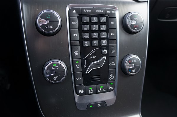 Bent minden nagyjából ugyanolyan, mint a hétköznapi V40-esekben, csak a dekoráció színe más. Szerencsére szóba se jött napjaink lassanként legcikibbé váló beltéri eleme, a fekete zongoralakk-betét (magyarul: olcsó, fényes, fekete műanyagból készült, nagy hatékonyságú por- és ujjlenyomat-gyűjtő) a középkonzolon. Nem is valami szánalmas fautánzat van itt, a németes alumíniumról is lemondtak – a díszítőelem húzott bronzlemezhez hasonlít. Na ugye, van még anyag a Földön, amivel érdemes kísérletezni, ez speciel baromi jól néz ki. Kár hogy feláras.