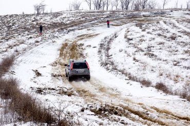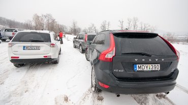 Már az elején kiszámoltuk, hogy legalább 50-60 milliónyi autó lesz a teszten, a rizikófaktorokat is mérlegeltünk, így már az ötlet megszületésekor összefogtunk a vezetéstechnikai tréningeket szervező Driving Experience céggel, akik a pályát és a vezetési fortélyokat is sokkal jobban ismerik. Mi szállítottuk a kocsikat, ők a tudást. Előre lelövöm, kár tényleg nem sok keletkezett, a veszteséglistán mindössze egy hátsó lökhárító szerepelt, a Nissan X-Trailé, amely elakadt a hóban, és felhasadt, ahogy kell. De higgyék el, sokkal több is lehetett volna, ha nem a megfelelő emberek vezetik az autókat, nevezetesen Palánkai Gellért és Tóth Zoltán vezetéstechnikai oktatók.