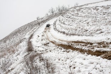 Csak hát a franc se gondolta, hogy ennyire kemény lesz a próba. Jó előre kellett szerveznünk, így fogalmunk sem volt, milyen időjárás vár a kilenc autóra. Csak azt tudtuk, hogy hol: a piliscsévi motokrosszpályán. Akár száraz, fagyos, hómentes idő is lehetett volna. De nem lett. A szottyos téli időjárás alapozta meg a sarat, amely még átfagyni sem tudott igazán, amikor ráesett pár centi hó, majd az egészet egy kellemes ónos eső homogén jégpáncéllal borította be. Klassz, nem?
