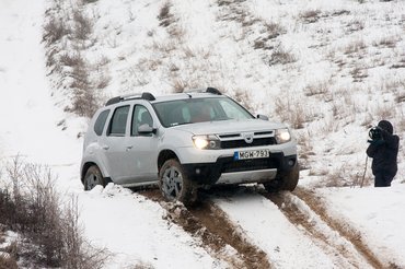 Két kivétellel az összes autó alapvetően fronthajtásos, szükség esetén pedig többtárcsás kuplung zárja a hátsó hajtást, a kérdés, mi működteti. A Dusterben is ez a helyzet, elektromágnes nyitja-zárja, ha kell, automatikusan, de a vezető is zárhatja. A rendszer azonos az X-Trailével, és érzésünk szerint a teljesítménye is maximum annyival maradt el, amennyivel gyengébb a Barum téligumi a Nissanénál. (A siratófalon azért kapott egy második lehetőséget, mert elsőként neki kellett feltörnie a jeget, utána a többieknek már valamivel könnyebb dolguk volt.) A Dacia meghökkentően jó mozgásában a kiváló terepszögek is szerepet játszottak, amellett persze, hogy a 4x4 rendszer és az ESP szoftverét rohadt jól írták meg. Minden egyes forintját megéri.