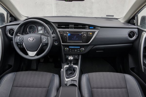 Az Auris belsejére a biztonsági kűr a legjobb műkorcsolya-kifejezés. A műszerfalat érzékelhetően megpróbálták úgy megcsinálni, hogy ne tolakodjon be az ember aurájába. Egyetlen nagy tömeg, a közepén egy ívelt trapéz, amit krómcsík övez. Kétségkívül egyedi, de valamiért sem a formák, sem az anyagok nem sugallják azt, hogy jobbat akartak csinálni egy Golfnál, Astránál vagy Focusnál.