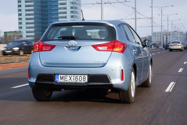 Az Auris hatalmas előrelépésének fontos eleme az új futómű, amely hátul a létező legegyszerűbb konstrukció: csatolt hosszlengőkaros. Ez alapvetően nem baj, a hangolás alapvetően kicsit feszesbe hajló, de még a magyar utakon sem tűnik vészesnek. Cserébe kanyarban sem billeg, direktebb módon követi a kormánymozdulatokat, tényleg fiatalosan mozog. Aztán egyszer mentem az Aurissal nagyon hullámos földúton, azt hittem, le fogom harapni a nyelvemet, és kiderült, hogy messze jobban rugózza ki a nagy egyenetlenségeket, mint hittem volna. A futóműre nem lehet panasz, ahogy a fékre sem.
