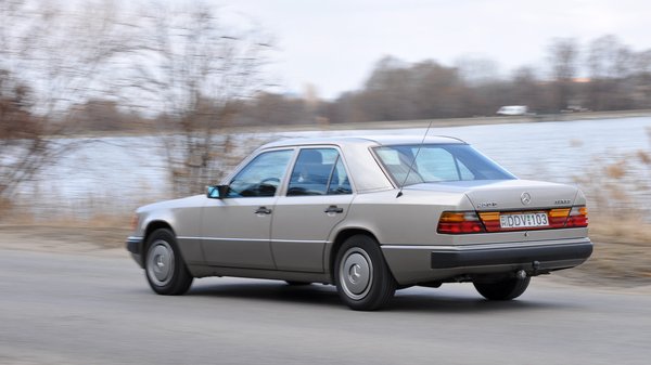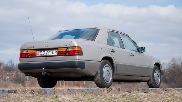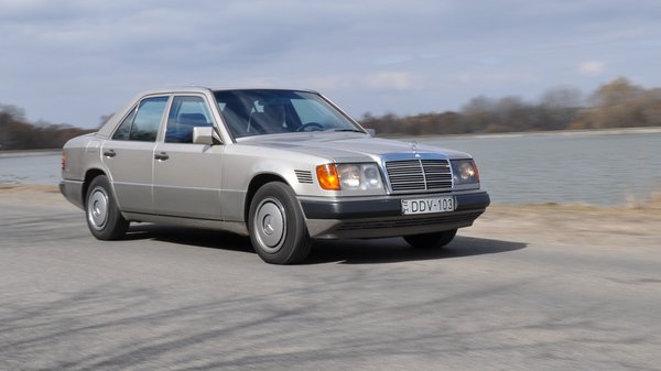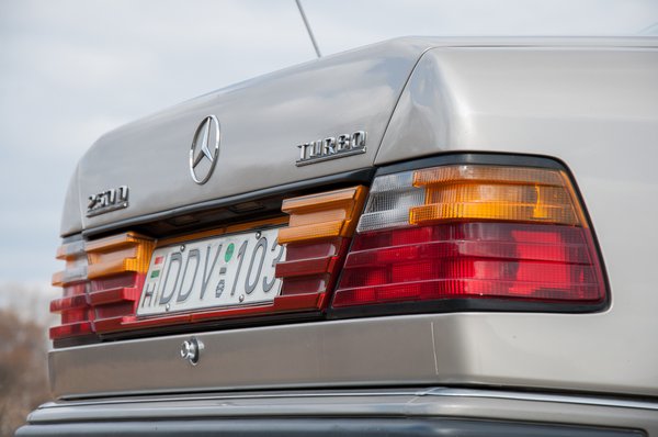 A szóban forgó autó épp olyan volt, mint Kriston János 250 D Turbója – tudják, a Mercedesnél a TD a Touring Dieselt jelölte akkoriban (azaz a kombit), a D Turbo volt a turbódízel. Ez így is volt mindaddig, amíg egyáltalán léteztek feltöltetlen dízelmotoros autók a kínálatban. Kis különbség, hogy cikkünk autója a koraiak közül való, a Tibi barátom által 1993-ban tesztelt viszont egy meglehetősen késői, már E osztálynak nevezett példány volt. Sok különbség nincs – a régebbin még vastag króm a maszk, hátul színes Lego-világ a lámpázat, picit a kormány is más, traktorosabb, még a nyolcvanas években járunk.