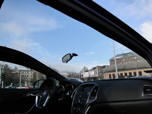 A tesztautó ezt némileg kompenzálta azzal, hogy előre és felfelé igencsak ki lehet látni: a szélvédő felcsúszott egészen a tető közepéig, így gyönyörű a kilátás az amúgy bunkerszerű hátsó ülésről is, a legmagasabban lévő jelzőlámpa is jól szemmel tartható. Nem tudom, a negyedmilliós panoráma-szélvédő sajátossága-e, de az üveg egy furcsa dolgot produkált. Jellemzően este az éles fényeket megduplázta, de a szembe jövő erős LED-es és xenonlámpák fénye kétszeres szellemképpel látszott. Már azt hittem, megőrültem, de nem: ha a Lánchíd fényfüzérét a szélvédőn át néztem, duplán volt ott, az oldalüvegen keresztül viszont szimplán.