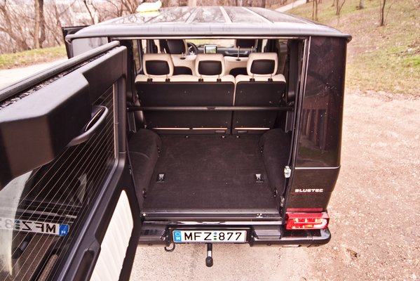 Az elmúlt 33 évben a Mercedes G osztály úgy fejlődött, hogy megkapta a modern eszközöket, amiket a piac elvár és megkövetel, de a márka erősségeiről nem mondott le. Annyira nem, hogy még a praktikus dobozformát is meg merte tartani, pedig elég megosztó. Érdekes, hogy több embernek tetszik, mint akinek nem, pedig tényleg nagyon szélsőséges. A kilincsek is megmaradtak a terepen is megbízható, masszív nyomógombos, régi darabok, ezeket biztos nem nyitja ki egy beleakadó gally, vagy faág. Az üvegek szinte teljesen síkok, semmi hajlás, görbület, ív. Vállban nem kezd szűkülni a kasztni, a csomagtér pedig pontosan középméretű, félköbméteres, kétajtós szekrény szélességű, magasságú és mélységű.