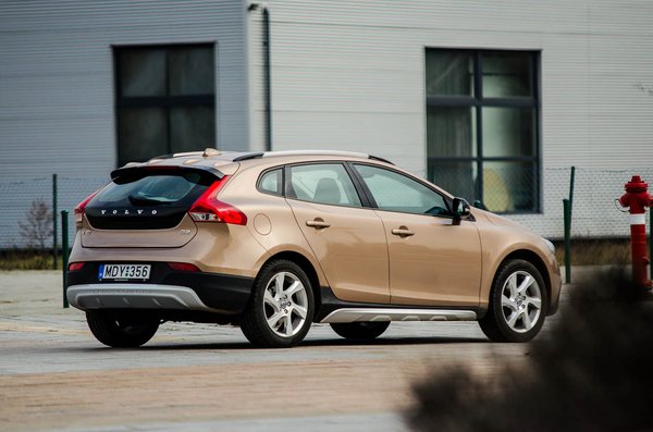Van elmélet, mely szerint ez a négy centis emelés, az ál-védőlemezek, meg a crosscountryzás azt a célt szolgálja, hogy a macsóbb megjelenéssel férfiaknak is el lehessen adni a V40-est, de ez szerintem téves. A V40 emelés, meg a többi hülyeség nélkül is jól néz ki. Az orr arányai kicsit focusosak, de a lemezek szépen domborodnak, oldalt nagyon ügyesen játszanak fénnyel és árnyékkal, a jellegzetes Volvo-hátsó lámpák pedig egyrészt szépek, másrészt nagyon Volvók. Nem nőies ez, inkább dögös. A négy centis futóműemelés viszont nem csak optika.