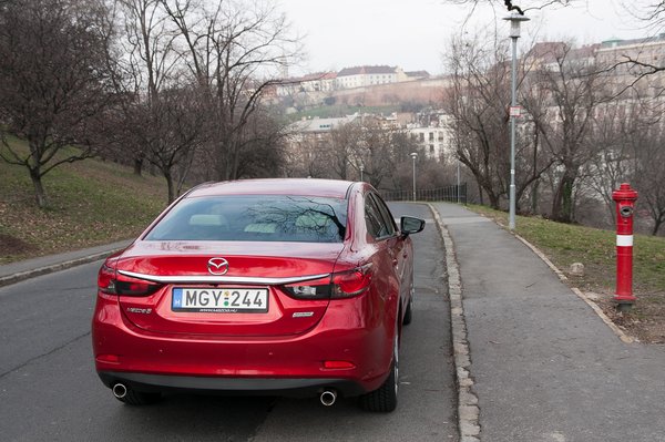 Visszatérve a tömeg és a motor viszonyára, a Mazda 6 még azoknak is imponálni fog, akik a spórolást szeretik. Az új Skyactiv motor ugyanis váratlanul keveset fogyaszt ebben a méretes autóban: Svájcban, Ausztriában, ahol a traffipax-ellátottság és a szigor ráveszi az embert a tötymörgésre, lazán közlekedtünk hatliteres átlag alatt, sőt, a szállásunk vidéki részen volt, ahová országúton lehetett eljutni, itt már-már az öt literhez jártunk közelebb. De az összátlagot a németországi 180-200-as utazás sem emelte 7,3 fölé. Sőt, a városi autózás Budapesten sem.
