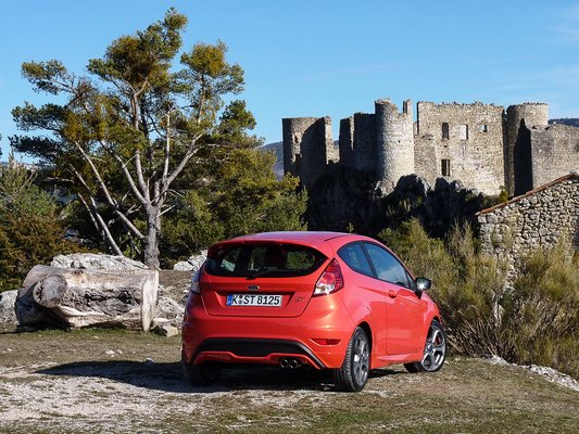 Nézzünk a lemezek alá! A négyhengeres benzinmotor tudásáról már szóltam, kiegészítésképpen még pár adat: széndioxid kibocsátása a gyártó mérései szerint 138 g/km, fogyasztása pedig 5,9 liter 100 kilométerenként. Természetesen azon nyomban kezet fogok egy arktiszi jegesmedvével, ha egy átlagos felhasználó ezt bizonyítottan eléri. Mi 9 litert mértünk, és én egyáltalán nem panaszkodtam emiatt, elvégre a teljesítmény benzinből születik, és ennyi üzemanyag elégetéséhez képest a vezetési élmény fenomenális. A maximális nyomatéka 240 Nm, de overboost üzemmódban rövid ideig 290 Nm-t is ki tudunk préselni belőle. (Az elsőd Fiesta ST motorja még „csak” 190 Nm-t tudott.) A végsebesség eléri a 220 km/órát, amit leginkább csak versenypályán, vagy egyes német autópályákon lehetne kihasználni. Nekem személy szerint már csak ezért is hiányzott a tesztprogramból egy kis pályázás, na meg a félig, illetve teljesen kikapcsolható menetstabilizáló (ESC) kipróbálása végett is, amivel érthető módon nem akartunk kísérletezgetni a provance-i hegyi utakon, közúti forgalomban. Így csak annyit mondhatunk, hogy valószínűleg jókat lehet játszani a Fiesta ST-vel, főleg, hogy még az első difizárat imitáló elektronikus szabályzása is van.