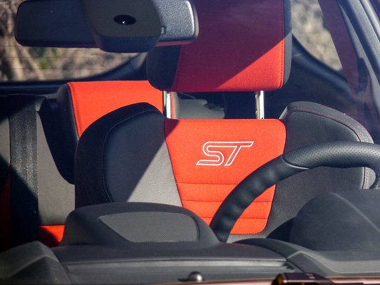 Az utastérbe hatolva pár remek meglepetés, és több kisebb csalódás vár ránk. A részben bőr borítású Recaro ülésekről csak a legjobbat tudom mondani: remekül be lehet állítani őket, jól fogják a testet (erre itt tényleg szükség van), és közben rejtélyes módon még kényelmesek is. Kellemes ráadás, hogy jól is néznek ki. A füligszáj-hatás egyik oka, hogy az ST felirattal díszített, multifunkciós, csökkentett áttételű, elektromos rásegítésű volán mögül Wall-E leselkedik kifelé – ez a szinte karikatúraszerű műszeregyüttes egyszerűen imádnivaló, és remekül leolvasható. A középkonzolról sajnos ekkor a dicséretet nem tudok mondani, ez a szimmetrikus, fényes betétes mobiltelefon-dizájn nem a kedvencem.