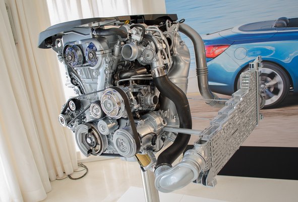 A SIDI betűszó megfejtése Spark Ignition Direct Injection – ez technikailag ugyanaz, mint bármilyen GDI, JTS, DISI, vagy akármi, a lényeg, hogy ez most új, és az az autóiparban általában azt jelenti, hogy igen jó. Csak az alagutakban hallani a hangját, de az szép. Most, hogy ezt leírtam, el is gondolkoztam, minek csinálták meg ilyen jól, amikor egy középkategóriás kabrió tényleg nem erről szól. A váltó jó, bár mintha a Fordok váltási érzete még mindig kellemesebb volna, arról nem beszélve, hogy a múlt héten adtam vissza egy 114-es BMW-t, és hát az a váltó, az magyarázat nélkül is prémium. A féktárcsák nem tűnnek nagynak, de egyrészt 19 colos felnik voltak az autón, másrészt egy nyirkos fehér aszfaltos szerpentinen az ember úgyse fékez akkorákat, a száraz Hungaroringen biztos ki lehet nyírni némi körözéssel.