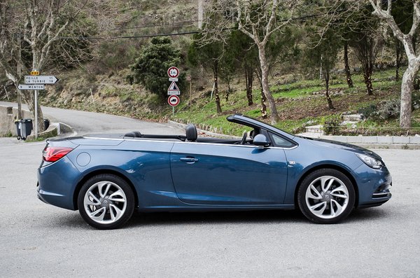 Most pedig összegezzük a kedvezőtlen előlejeket: méret, tömeg, motor. 4,7 méteres hossz, ez 9 centivel több, mint az utolsó Vectráé. A tömege negyed tonnával nagyobb, mint az Astráé, 1633 kiló. A motorja egy 1,6-os benzines turbó, 170 lóval, ami tízzel kevesebb, mint az előző 1,6-os Opel-turbóé. Ugye? Egyetértek, én se ide hoztam volna az európai bemutatót, Monte Carlóba, hogy aztán az amúgy gyönyörű, de szűk, meredek, és komoly hajtűkanyarokkal teli szerpentineket programozzam a naviba tesztútnak. Én egy ilyen kabriót nem is tudom, hová vinnék, talán valami nyugis, méltóságteljesen kanyargó tengerpartra, ahol a sok tetü lakóautó miatt amúgy se lehet meglódulni. Kabrióval nem is kell, ezerszer megírtuk, hogy autózni roadsterekkel kell, BMW Z4-gyel, Mazda MX5-tel, kétüléses hátsókerekesekkel, és punktum.