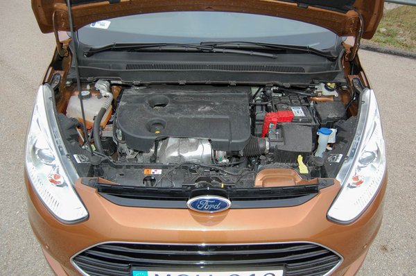 Az autó érdekessége a motor. Ötfokozatú váltóval párosított 1.5-ös dízel 75 lóerővel. Az egész koncepció úgy született, hogy a Ford vezetőségében valaki Monica Beluccival álmodott, aztán amikor reggel felébredt, a saját felesége adott a kezébe gőzölgő kávét, és tette oda mai vasalt ingjét. Emberünk elgondolkozott, belül kicsit szégyellte is magát, és meghozta a döntést: fenébe a felesleges álmokkal, a lehetőségeinknek kell örülni, és azokkal megelégedni. A központban látványosan tépte szét a 180 lóerős twin-turbó dízel koncepciót a B Maxhoz, szembefordult a mérnökökkel, és a trendekkel is: 75 lóerős, kis dízelmotort akarok, amely takarékos és racionális egy ilyen autóban. Néztek, forgatták a szemüket, hetvenöt lóerő? Még motorkerékpárban is gyenge, atyavilág, mi lesz ebből.