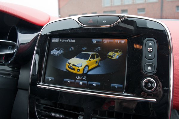 A Clio RS az elmúlt évek hagyományainak megfelelően Cup csomaggal is megvehető, 18-as kerekeken, vörös féknyergekkel és Cup futóművel, ami érthetetlen okból Cup alvázként szerepel az opciós listán. Ez a variáns dupla lengéscsillapítást, további 3 mm ültetést és direktebb kormányzást kap a normál RS-hez képest. Az R.S. Monitor ugyanakkor megmutatja a vezetőnek a keresztirányú- és hosszanti gyorsulásokat, a hajtott kerekek kipörgését, az aktuális nyomatékot, teljesítményt, vízhőfokot, szóval minden olyasmit, amit nincs az embernek ideje nézegetni, ha épp gyorsan vezet, még diagramos formában sem. De jópofa ötlet. Sőt, van stopper, GPS-alapú köridőmérés is. Az RS vásárlói bónuszként a zajgenerátorukba három extra hangot is kapnak, méghozzá az Alpine A110-ét, az R8 Gordiniét és a Nissan GTR-ét.
