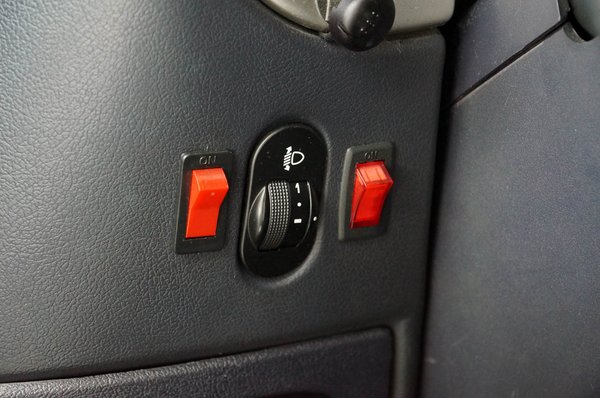 Az elektromos ablakok kissé szorulnak, főleg, ha nem jár a motor. Ki kéne pucolni a mechanikát. Az akksi is kuka lesz, bár a riasztót kiköttetem a francba, mert egy-két hét alatt leszívja, így volt alkalmunk már tologatni. Igaz, ezen talán segített, hogy feltöltöttem rendesen, és hogy nem pittyegővel, hanem kulccsal zárom, ami nem aktiválja a riasztót. A harmadik ajtó eleve csak kulccsal nyílik, kilincse sincs. Felemelni könnyű, jól tartják a teleszkópok, melyeket már utángyártottra cseréltek. Az utastérajtókat erővel kell behúzni, miután helyet foglaltunk az ülésekben.