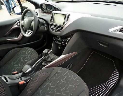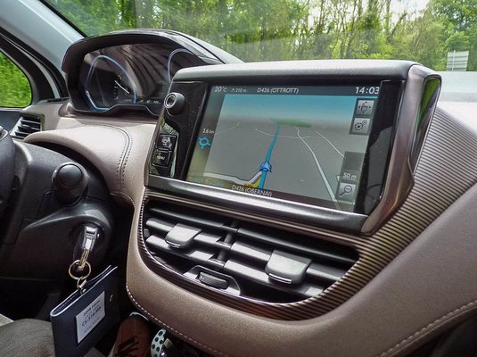 A beltérbe hatolva a 208-as műszerfala fogad, felszereltségi csomagtól függően turbózva. Helyes, ez egy kellemes egység, felesleges lett volna másikon gondolkodni. Sok mai autóéhoz képest letisztult és funkcionális, miközben a szemnek is megadja, ami jár. Szinte sztenderddé vált mostanában, hogy a kormány mögül egy űrlény, vagy egy robot néz ránk. A 2008 szélvédője alatt is lakik valaki, aki, miközben mutatja a sebességet és a fordulatot, biztató tekintettel figyel bennünket kék szemeivel. Köszönet a nagy, 7 colos, kellően magasra helyezett, érintőképernyős központi egységért, melynek kezelése könnyű, képe jól látható. Újabb pluszpont a navigációért, amely az összesen mintegy 260 kilométeres tesztúton egyszer sem tévedett. Hasonló élményem volt nemrég a Ford Kugában is, úgy látszik a gyári egységek végre utolérték tudásban a filléres bolti navikat.