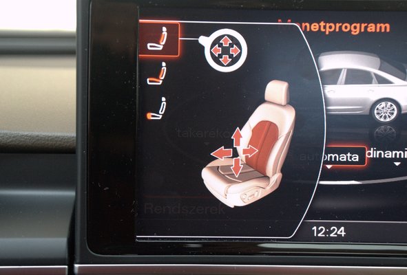 Nem tudom, ki válogatta össze az extrafelszereltséget, de elég jól eltalálta, mit szeretek én is egy ekkora limuzinban: világos bőrkárpit, négyzónás klíma, jó hifi, kényelmes ülések és kész. Nem volt radaros, távolságtartó tempomat, csak sima, mezei, nem volt sportülés borzalmas oldaltámaszokkal, ellenben komfort-változat mindenfelé állítható, többrészes támlával és közepesen puha töméssel – szellőztetéssel. Okos funkció, hogy az utasülést a sofőr is tudja állítani, ha jobb hátul ki akarják nyújtani a lábukat, vagy maga az utas veszik el a jobb 1-en saját ülésének állítógombjai- és tekerői között.