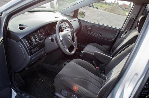 A beltér a korabeli Mazdákhoz képest kicsit puritán, pedig ugye a korabeli (2003) Mazdák sem voltak éppen az extravagancia melegágyai. A biztonsági öv állítható felfüggesztése Papp Tibinek az Avensiséből ismerős, Pista a világításkapcsolót említi az 1995-ös Mazdájából – olcsó, ugyanakkor jól bevált, örökéletű alkatrészek. Semmilyen kunsztot nem tud, belül gyakorlatilag nem tartalmaz érdekes elemeket. Ezt olyanok, akiknek volt már japán autójuk, nagyra értékelik – lámpa, klíma, csókolom. A kezelőszervek számomra amúgy is a mennyei béke hírnökei. Az indexkar például úgy kattan be fel-le, ahogy csak egy japán autóé tud A szórakoztató elektronika amúgy is gyorsabban fejlődik, mint az autógyártás, és nagy valószínűséggel a legjobb, mármint nekünk legjobb bluetooth-kihangosító-mp3-hifi-navit úgyis utólag szereltetjük az autóba. A hordozható DVD-lejátszót, vagy hogy is hívják aktuálisan a gyerekek filmnéző platformját, meg úgyis felgumipókozzuk a fejtámlára a hosszú út előtt.