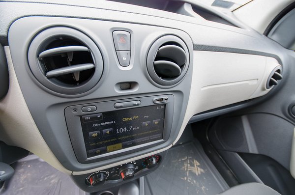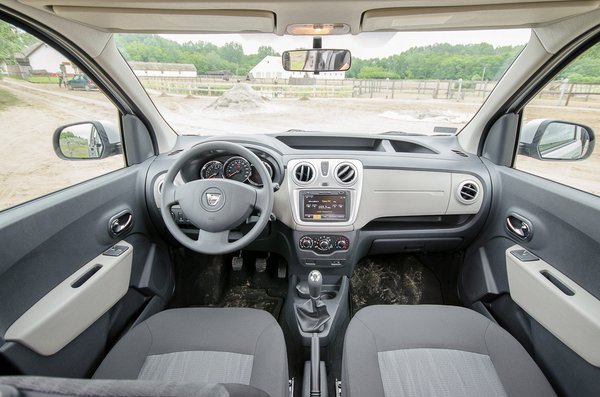 A három felszereltségi szint neve Access, Ambiance és Arctic, a lényeg, hogy egy klímás, ködlámpás, kétoldali tolóajtós, 1,2 benzines turbó megáll 2,5 millió forintból (ugyanez dízellel 3,54 M). Nem tudom, áttörés-e, kényszer, esetleg mindkettő, hogy már Daciában is rendelhető MediaNav nevű multimédia, ezt lelkiismeretesen bele is szerelték a bemutatóautókba. Gusztusos, érintőképernyős, a rövid próba alatt semmilyen ellenszenves tulajdonságára nem derült fény. Igaz, azt nem róttam fel neki, hogy még a személyautós kivitelben is klasszikus, furgonos bödönhangon szól a zene.