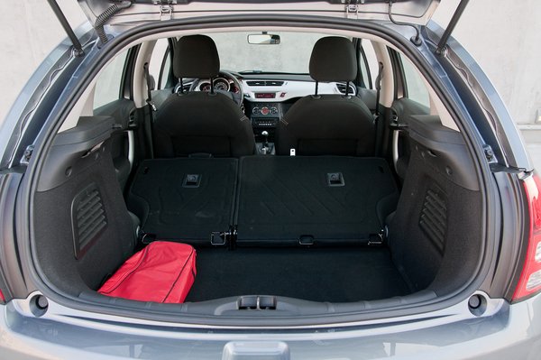 A C3 (394 centi) egyéniség terén ugyancsak jól áll, kezdve a hátközépig érő szélvédőüvegtől, a kellemes anyagokon át a bumfordi tetőívig, ami azért kiad egy extrém világos (fekete béllel!) belterű, kellemes tapintású, csomagtartóval (kapaltartó alatt 300 liter, a hátsó üléseket lehajtva 1100) és puha rugózással megáldott városi kocsit.