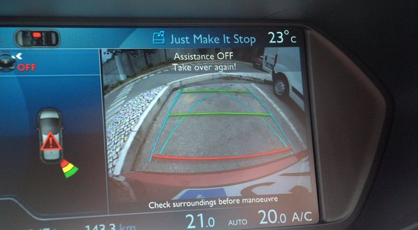 Ebédkor úgy gondolta Francois, kipróbálja a parkolóasszisztenst, ha már felhívták rá a figyelmét, hogy az is van a Picassóban. Merőleges helyek voltak, és a gép egyből fel is ismerte a hézagot. Csak azt nem látta, hogy az egyik szomszédos autónak tárva-nyitva van az ajtaja, így esélyük sem volt beférni. Francois azért követte az asszisztens vezényszavait, tolatott, majd megállt, amikor a parkolóradar elkezdett sípolni. Még egy előre-hátra manővert kért a gép, miközben kormányzott, hátha mégis sikerülni fog. Aztán feladta, és megkérte a sofőrt, fejezze be ő a manővert. Ezen a rendszeren még kell egy kicsit csiszolni, gondolta Francois, aztán megkérte a szomszéd autóst, csukja be az ajtaját.