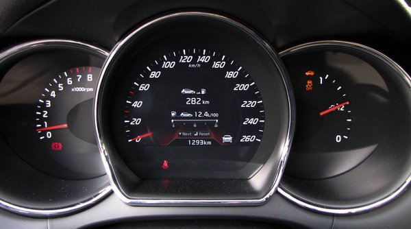 Hogy mennyire jól tol a motor, autópályán derül csak ki igazán. Sajnos a németek még nem tudják, hogy a mélyről világító, kétszer négy darab LED-et látva szabad utat kell engedni – a Kiáknak még nincs meg az az Autobahnon oly fontos tulajdonsága, amit a német Überhol-image-nek (szabadfordításban vigyázz-jövök-imázs) nevez. Ezért a százhatvannal tötymörgők miatt többször kellett erőteljesen lassítani, majd lendületesen gyorsítani, hogy érezzük, milyen az élet egy Kiában kétszázhúsz felett. Hiszen a csúcssebesség 230. A fékek erősek, csak azt furcsálltam, hogy igazán erős lassításnál kicsit asszimetrikusnak tűnt a bódé mozgása. 130-140-ről szinte értelmetlen visszaváltogatni, még hatodikban is tisztességesen húz a motor. Valahol 180 körül veszít kicsit a lendületből, de lazán kúszik a kilométeróra 220 fölé. A zsúfolt autópályán ugyan nem volt lehetőségünk a végsebességet lemérni, de ennyi is elég ahhoz, hogy lássuk, szépen fut az autó, stabil, és a normális autópálya utazótempónál kimondottan csendes.