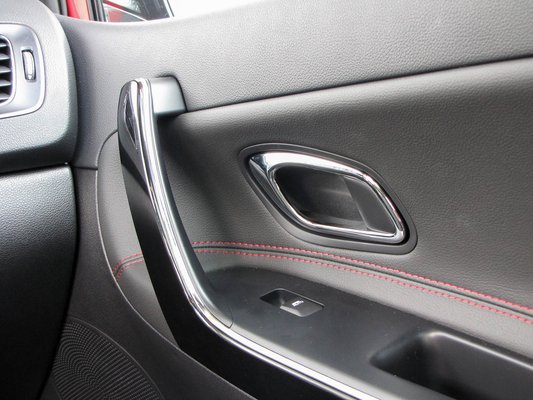 A beltérben is sportos a dizájn. Iszonyatosan jó oldaltartású, kényelmes bőr Recaro ülésekbe ülhetünk elöl, a kárpitok minden varrásához, a kormányba és az ülésekbe hímzett GT-logókhoz vörös cérnát használtak. A pedálok fém burkolatokat kaptak, és a sportosság jegyében az összes burkolat, még a tetőkárpit is fekete lett. A motort természetesen menő gombos indítással kelthetjük életre, és a kipufogón is igyekeztek hangolni, hogy a sportosság hangban is megjelenjen. Ez nem igazán jól sikerült, az utastérbe egy kevésbé kellemes tónusú zaj jön csak be, leeresztett ablaknál sokkal szebb kipufogóhangot hallhatunk.