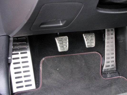 Fontos, a sportosságot hangsúlyozó elem a műszercsoport, aminek középső tagja tisztán LCD, a mutatókat és az összes ábrát csak vetíti. Éppen ezért gombnyomással választhatunk, hagyományos kilométerórát, vagy ugráló számokat leolvasva akarjuk-e megtudni a sebességünket. Utóbbi módban a turbónyomást is folyamatosan szemmel tudjuk tartani, illetve a motorban tomboló nyútonmétereket is lerajzolja a kijelző. Ezt, mondjuk, nem tudom, miből mérik, gyanítom, nem egy igazán egzakt számot láthatunk, inkább csak egy előre meghatározott számítás szerint kalkulált értéket.