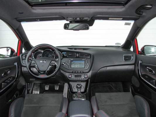 A GT bizony tényleg egész jó GT. Hely van benne bőven, fej-, és lábtér szintúgy, hátul is el lehet férni, még a négy centivel alacsonyabb ProCeedben is. Az úti motyónak is van hely, az alapból 380 litert akár 1318 literig lehet bővíteni. Az ötajtós karosszériával abszolút családbarát, a háromajtós kivitel viszont extra dögös, és bár a második sorba klausztrofóbiásokat nem szabad ültetni, másoknak kuckó érzetük lesz az apró ablakok és a lágyan ívelő kárpitok miatt. Lehetne kifogásolni, hogy egy gran turismo ennél azért nagyobb, de ha a Skoda Octaviával vetjük össze, tengelytávban csak 3 centi a különbség, a külméretbeli differencia pedig a hátsó túlnyúlásoknál keresendő.