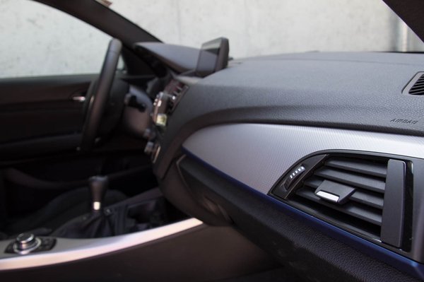És azok a fékek. Régebben sokszor kritizálták az erős BMW-ket, hogy a fék a gyenge pontjuk - hát itt nem illik panaszkodni. Elöl négydugattyúsak a kékre pingált nyergek, hátul is hűtöttek a tárcsák. Amikor már kezdjük érezni a szagot, és a pedál is kicsit mélyebben fog, még bőven vannak tartalékai. És ahhoz, hogy idáig eljussunk, már elég kemény kézzel kell bánni a kis 1-essel. Megkockáztatom, közúton nemigen lehet térdre kényszeríteni ezt a fékrendszert.
