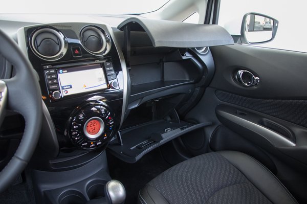 A régi Note retróját a beltérben is hiába keressük. A háromkarikás műszeregység közepére egy kör alakú digitális karórát ültettek, amin a fedélzeti számítógép szokásos kijelzéseit pörgethetjük. Mivel 2013-ban kötelező elem az eco-üzemmód, ehhez fényjátékok kapcsolódnak a műszerfalon. A Trabant econométeréhez hasonlóan szofisztikált gázpedálállás-skálát kapunk a karórára, ha vagyunk olyan elszántak, hogy megnyomjuk az eco-gombot, továbbá kigyullad a kék hangulatvilágítás a műszerek fölött, és jutalomként zöld fényt kapunk, ha nem tiporjuk nagyon a gázpedált.