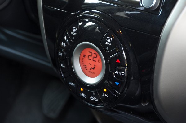 Új találmány a középkonzolon a zongoralakk metál. A kályhaezüst keretbe foglalt középső panel ugyanis nem sztenderd lakkfekete, hanem ha közelről nézzük, metálosan sziporkázik. Nem valószínű, hogy hosszú távon élvezhetjük majd az esztétikai élményt, mivel a Micrától örökölt klímakezelő halálcsillagot folyamatosan tapizzuk, és ezzel szépen összemaszatoljuk a csillogó felületet, de amíg tiszta, határozottan feldobja a szürkeséget. A Nissanokban megszokott Bosch gyártmányú érintőképernyőt hamar meg lehet szeretni, könnyen kezelhető és logikus, kár, hogy csak a magasabb felszereltségi szintekhez jár.