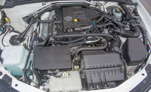 Az ember idegrendszerébe az évek alatt valahogy beleissza magát egy normális autó viselkedése – észre sem vesszük, hogy nem úgy jön ki egy kanyarból, mint az állat. Na ezért tud olyan nagy élmény lenni ez a sperres MX-5, minden áldott alkalommal. Meg mert van átvinni való erő: 160 LE, ami egy 1100 kilós kasztniban már elég jó. Főleg érzésre, de papíron sem rossz: 7,6 másodperc a 0-100-a. A 188 Nm-es nyomaték is jelzi, hogy ezt a motort inkább taposásra találták ki. Nem kevés nyomaték a békés közlekedéshez, csak látszik, hogy a csúcsteljesítményen volt a hangsúly. A kétliteres motor hasznos fordulatszám-tartományát 500-zal feljebb tolták, tehát minden eddiginél mámorítóbb érzés kinyomni a szemét, miközben a hangja sem piti, bár hogy konkrétan mennyi a hangból az ISE kódnevű indukciós hangkiemelés, nem tudom. Jó volt forgatni, na. Mindeközben a fogyasztása nem igazán ment 9 liter fölé. Az én 1,6-os MX-5-ösöm annak idején mindig tíz litert fogyasztott, ha esett, ha fújt. Igen, én is hazudhatnék kisebb fogyasztást, nem tartana semeddig, de ha egyszer tíz volt, tíz volt. Ehhez képest óriási előrelépés a mai 9 egy jóval nagyobb (+400 köbcenti) és erősebb (+ 50 LE) motortól, úgy, hogy még bugi is jutott bele, nem csak úgy agyatlanul húz, mint egyik-másik gépjárműipari tahó.