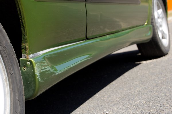 A többi szpoiler valami félgyári tuningkészletnek tűnik, MS Design feliratot találtam rajtuk. Az utasajtót nagy recsegve lehet csak kinyitni, akad a küszöbtoldatban. Lehet, hogy csak az utólagos rögzítés miatt, mondták is a Bécsi Autóparknál, ahonnan az autót kölcsönkértük, hogy már többször leesett, úgy kellett visszaragasztani.