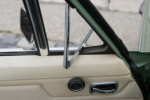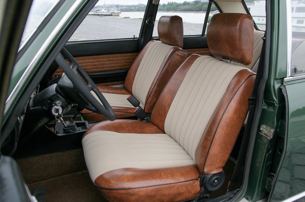 Azért ha körülnézünk, arcon csap a hetvenes évek hangulata. A kedvencem a középen kitüremkedő fűtéskonzol brutalitása. Nagy, kerek gombok, középen egy bordázott tekerentyű egy akkora dobozban, mint más autóknál a műszeregység. Egy lehelettel egyszerűbb, olcsóbb kivitel, mint a Mercinél, de még így is bőven átlag feletti a minőségérzet. A műszerfal akkoriban avantgárd lehetett, feledtette az egyszerűbb kárpitokat.