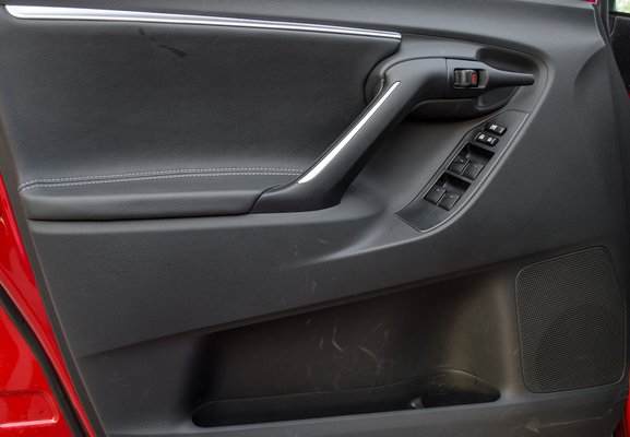 Az ajtókilincs hogy maradhatott ilyen műanyag, rejtély, és hiába van bőr az ajtón, szembeötlő a sivatag-szerűen terjeszkedő kemény műanyagok hatalmas aránya. A képek tanúsága szerint ráadásul könnyen karcolódik is, bár nem tudom, mi karcolhatta ezt össze, hiszen az ajtó közepéhez tűsarkú cipő csak nagyon elhivatott pornófilm forgatásán kerülhet. Mind a négy villanyablak automata, de a legszimbolikusabb különbség a Carenshez képest, hogy annak egy kivehető zseblámpa a csomagtérvilágítása, a Versóban ugyanott a tolatóradar kikapcsológombját találjuk. Biztos van, aki szerint utóbbi a hasznosabb és szexibb, de én nem tartozom közéjük.