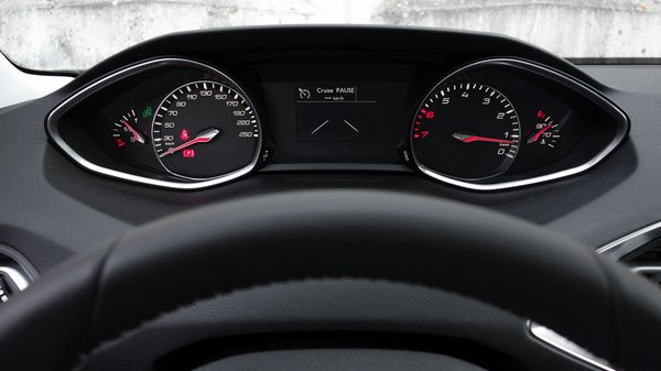 Az első, hogy hihetetlenül csendes. A 120-at 80-nak hiszi benne az ember, és erős gyorsításkor sincs igazi autóhang odabent. 130 fölött kicsit sziszegnek a tükrök, motorféknél hallani valami nagyon enyhe diffibúgást, de ezek azért inkább a nincs határát súrolják. Van egy sejtésem, hogy a 308-ashoz képest egy benzines G..., egy Astra és egy Focus, de talán még a Mazda 3 is zajosabb.