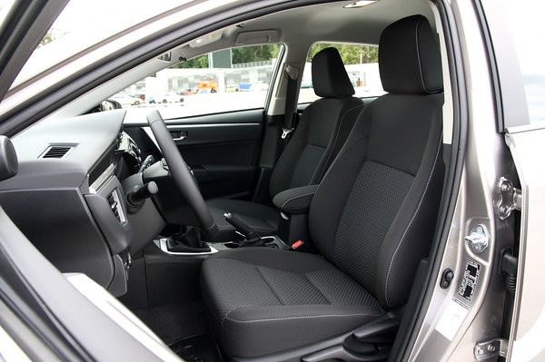 A Corolla belseje pont azt a stílust követi, amit az Aurisban már láttunk. A műszerfal is hasonló, de nem pont ugyanolyan. Szerencsére a bőrbevonatú, furán varrott felületet kihagyták belőle, és máris sokkal jobb az összkép, arról nem is beszélve, hogy a rádió és a körülötte lévő betét színe is megegyezik. Ettől függetlenül nem mondanám, hogy ez egy mainstream-belső, ennél az európaiak (Astra és Focus Sedan, VW Jetta) barátságosabbak és csak úgy dől belőlük a minőségérzet. Bár a Corolla sem rosszul megcsinált valami, a kissé kubista stílusú ajtópanelek és az egyszerű gombok rideggé teszik. Nem tudom, miért, de nekem például a levegőrostélyokról az jut az eszembe, hogy kitört onnan egy-két lamella – pedig nem. Csak egy vízszintes lamella van és kész, a japán mérnökök úgy látták, ez is pont elég jól tereli ez a levegőt.