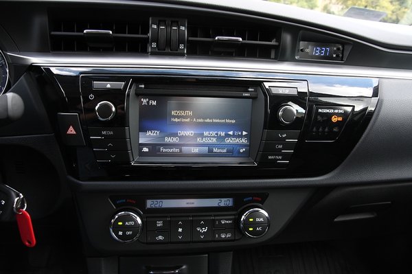 A fanatikus klubtagok jóvoltából itt volt úgy kilenc generációnyi Toyota, ha visszagondolok, nekem a 2007-ig gyártott, utolsó teljes család testesítette meg az igazi Corollát. Ez a mostani verzió csupán kiegészítés az ötajtós és a kombi Auris mellé, olyan piacokra, ahol jól eladhatóak a szedánok. A magyar is ilyen, meg a török, orosz is, és úgy általában egész Káeurópa. Azonban ennek van hátránya is: valójában azok a finomságok, amelyek a kompaktoknál már elérhetők, nincsenek meg a Corollához: a parkolóautomatikát leszámítva semmi ma menőnek számító extra nincs hozzá (vészfékező, sávtartó, táblafelismerő, automatikus távfény, kanyarlámpa, LED-es vagy xenon fényszórók, stb). Sőt, még a tempomat is csak a csúcs Lounge kivitelhez elérhető (igaz, ott széria), persze csak akkor, ha a motor nem dízel, mert ahhoz nincs. Szintén nehezen érthető, hogy a közepes Active felszereltségnél miért csak az 1,6-os benzineshez jár Bluetooth-kihangosító. De legalább az USB-csati alap mindenhol.