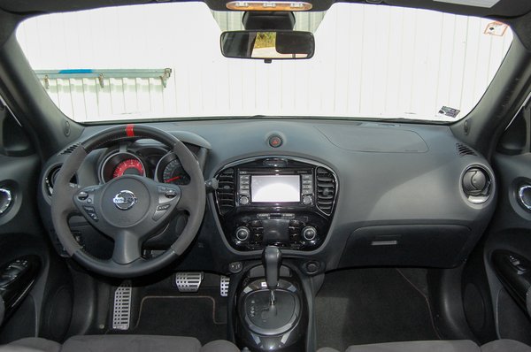 El tudom képzelni, hogy van, akinek tetszik ez a váltó, de egy sportos autóban nincs helye. Hiába a feszes futómű, a középállásban is érzékeny, sok visszajelzést adó kormány, ez a váltó mindent beárnyékol. Kézivel akár jó is lehetne, elég lehetne az ereje, illetve máshogy adná elő a lovakat. Mert egyébként az autóval nincs baj. Az összeszerelés minősége nagyon jó, az anyagok minősége is bőven megüti a kategória elvárt szintjét. A kasztni merev, és zavaró zajok sem jönnek be. Van biztonságot szolgáló négykerékhajtás, de ettől nem lesz a Juke terepjáró. Dicséretes, hogy ki is kapcsolhatjuk, a legjobb, ha meg sem vesszük. Az érintős középkonzol kijelzője jól kezelhető, a zene is megfelelő, van USB port is, tanár úr kérem, én készültem. Én vagyok a jó tanuló, csak kívülről így nézek ki: