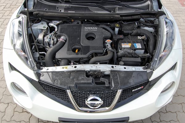 Az automatát behúzzuk D fokozatba, odacsördítünk a 200 lónak, és a 250 Nm-es nyomatéknak, és...csalódunk. A CVT váltó határozottan kivégzi az egész Nissan Motorsport egységet, még hírmondójuk sem marad. Ez pedig nem azért van, mert a CVT váltó rossz lenne, hanem mert úgy illik a Nismo modellbe, mint gumicsizma az asztalra. A CVT előnye a vajpuha, fokozatmentes erőátvitel, a rángatásmentes gyorsítás, de itt nem ez kellene. Hagyományos fokozatváltás, kiforgatott fokozatok és a hagyományos értelemben vett kipufogó és motorhang. Ha ennél a váltónál nyomunk egy határozott padlót, a fordulat feláll 6400-ra, és ott marad az idők végezetéig, illetve a végsebesség eléréséig. Közben úgy érezzük, leégett a nem létező kuplung, amit hallunk, az pedig minden, csak nem lelkesítő. Mellesleg még keveset sem fogyaszt, mert óvatosan közlekedve is 9,5 liter lesz az átlag, amely végül is nem rossz egy 200 lóerős autótól, de egy 1,6-ostól nem világbajnok. Az sem segít, ha manuális módba nyomjuk a CVT-t, mert akkor is csak nagyjából fél gázig tudja szépen elkülöníteni a virtuális fokozatokat, ha nagyobb gázt nyomunk, összemossa, és elárulja, hogy ez egy CVT, akármit akárhová is kapcsolunk.