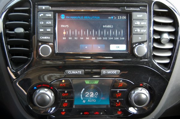 Külön érdekesség, hogy a klíma és egyéb infók paneljának a gombjai nem elektronikus feliratozásúak, hanem egy olcsó trükkel, más-más megvilágítással kétféle feliratot tudnak megjeleníteni. Ilyet még nem láttam autóban, de talán máshol sem.