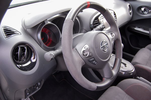 A forma esetleg eladja, a használati érték pedig minősíti a terméket. A Juke nem nagy, ahogy beszállunk, ez azonnal feltűnik. Az első ülések kényelmesek, a Nismo (Nissan Motorsport) sportülései pedig nagyon jól tartanak. A csomagtartó azonnal kettős vonallal húzza alá, hogy kis autóval van dolgunk, ez ugyanis még az átlagnál is kisebb. Talán itt spórolták meg a hátsó ülés lábterét, amely egész jó a teljes mérethez képest. Csalás azonban itt is van, mert az ülőfelület rövid, így beülve azért érezzük, hogy nem egy streccslimó a kis sportos Juke. Kicsit a háttámla is meredek, 190 cm-es magassággal nem jó itt üldögélni.