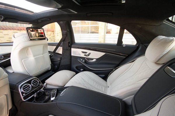Ha szeretnénk hátulra elektromos ülésmozgatást, az úgy 600 ezer, de ehhez meg kell rendelni a különálló üléskialakítást 459 ezerért, de amennyiben jól értelmezem a terjengős táblázatot, ez csomagban együtt alig több 600 ezernél. Ha ez megvan, a repülőkéhez hasonló, a kartámaszból kihajtogatható tálcák is kérhetők, potom 700 ezerért. Ülésfűtést és -hűtést a hőkomfort csomagban érdemes megvenni (209 EFt), így hozzájuthatunk gazdaságosan a kartámasz-fűtéshez(!!!!) is, elöl-hátul. Hát nem csodás kinézni ilyenkor a nyitható üvegtetőn 560 ezerért? Bár lehetne tévézni is, az egyéni szórakoztató rendszer 960 ezerért adja meg ezt. Amihez tényleg dukál egy jó 3D-s hangrendszer, akkurátusan lyuggatott fém hangszórórácsokkal, ez is megvan 2,5 millióból – ilyenkor még a tető közepén is van egy hangsugárzó. Gondolom a stílusban passzoló, vezeték nélküli fülhallgató már ajándék. A biztonság megnyugtató érzését a hátsó Pre-Safe csomag (480 ezer Ft) adja, mert ehhez jár övlégzsák és üleplégzsák is – ezek állítólag akkor is hatékonyan védik az embert, ha fekvő helyzetben henyél hátul.