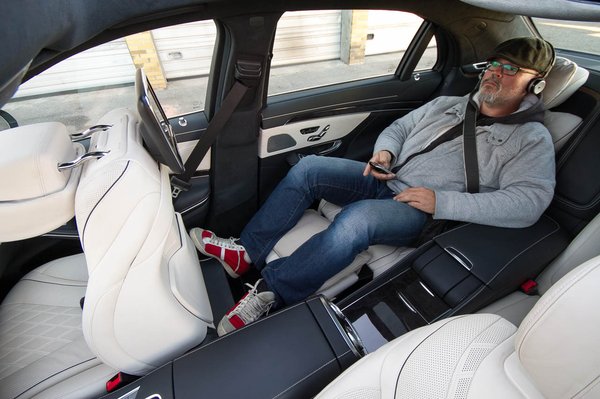 A hatás döbbenetes, körülbelül olyan érzés, mint amikor a repülő már félig-meddig elemelkedett a kifutópályáról, már nem ráz, de van még némi kapcsolata a talajjal. Viszont az út felett lebegés közben a Mercedes egészen közvetlen módon irányítható marad. Érzetre nem agilisabb, mint egy BMW, de biztos vagyok benne, hogy ez csak érzet. A Tannistesten elvégezték a kocsik jávorszarvas-tesztjét, és itt az S 500 Lang 71 km/órás tempóval erősen az élmezőnybe került, ami meghökkentő egy kéttonnás, bő ötméteres böhöm járműtől. Ami a fékeket illeti, csak az érzéseimre hagyatkozhatom. Nekem kábé olyannak tűnt a fékhatás, mint a Porsche Caymanban, ami leírhatatlan még az első ülésekről megtapasztalva is. Képzeljék el, hátul fekve milyen lehet.