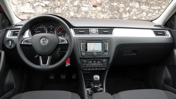 A végeredmény nem csúnya, de nem is szép – a Spaceback az a fajta autó, amit nem a külseje miatt szeretnek majd. És az az érzésem, a belső tér részleteire ugyanez igaz. Pedig itt a formatervvel nincs baj: a háromküllős multikormány a Superbben is tetszett, és még a sötétszürke felületek és a dekorációk arányát is jól eltalálták. Sőt, egy-egy érdekes részletet is találunk, amilyen az első ajtóborítás kifelé csavarodó felső felülete.