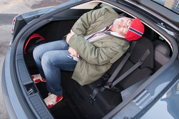 Még érdekesebb trükk, hogy a csomagtartóba felárért két kihajtható, igen profi pótülést is tesz nekünk a Tesla. Ezek hátrafelé néznek és ötpontos övek vannak rajtuk, nyilván a gyorsulás miatt. Ettől azonban még nem hét, csak 5+2 üléses a Model S, hiszen az erősen lejtős tető alatt nem fér el felnőtt, csak viszonylag kicsi gyerek.