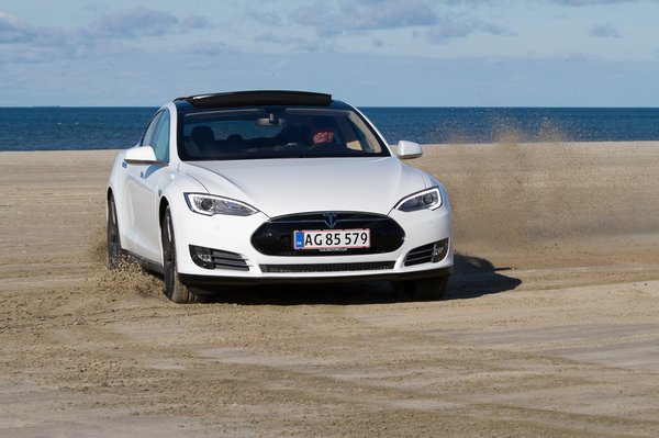 Autónak is jó a nagy Tesla. A kormánya finom, pontos, van rajta visszajelzés, nem elektromos autó kezelőszerve ez, hanem egy presztízslimóé, bár azok közül nem a legsportosabb hangolású, ez tény. Amennyire a lapos Dániában, a forgalom ismert álmatagsága mellett módunk nyílt rá, kipróbáltuk, hogyan fordul – jól. Az összes akku a kocsi aljában van, a tengelyek vonalában, emiatt nagyon alacsonyan van a nagyon nagy tömegközéppont. Billenni, borulni nem akar egyáltalán, megcsúszásra rávenni pedig ilyen körülmények között nem tudtuk, hiszen elöl 245/35 ZR21-es, hátul 265/35 ZR21-es gumik voltak fent. Ha kicsit talán tompább is egy 5-ös BMW-nél, a különbség nem jelentős.
